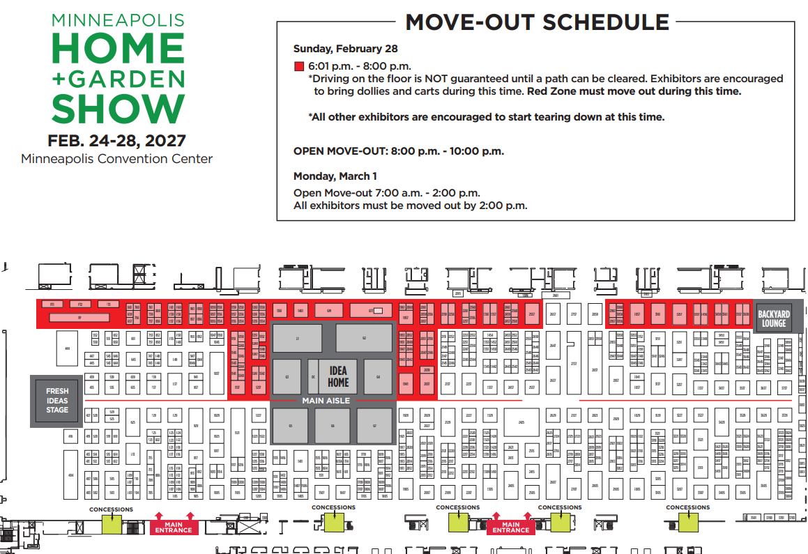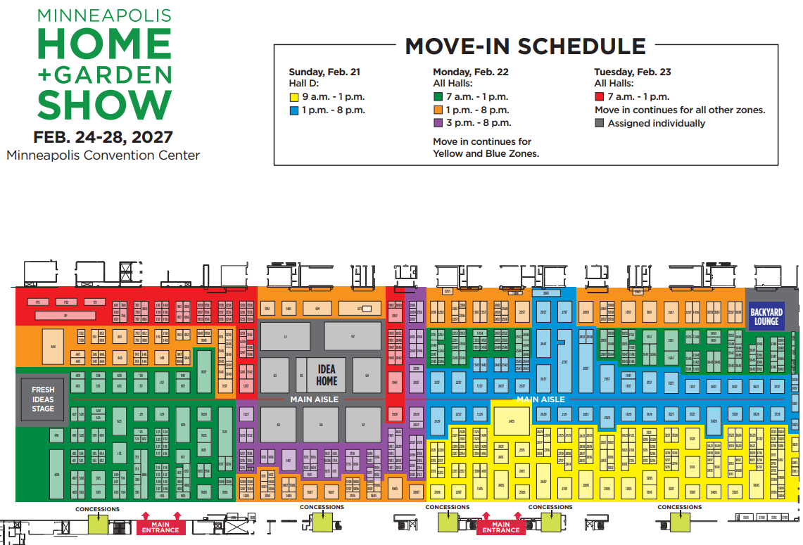 Exhibitors will be divided into six (6) move-in times over three (3) days. Red Zone Exhibitors may NOT move in until Tuesday, February 23.